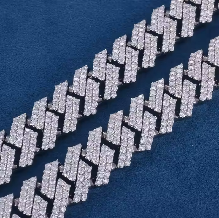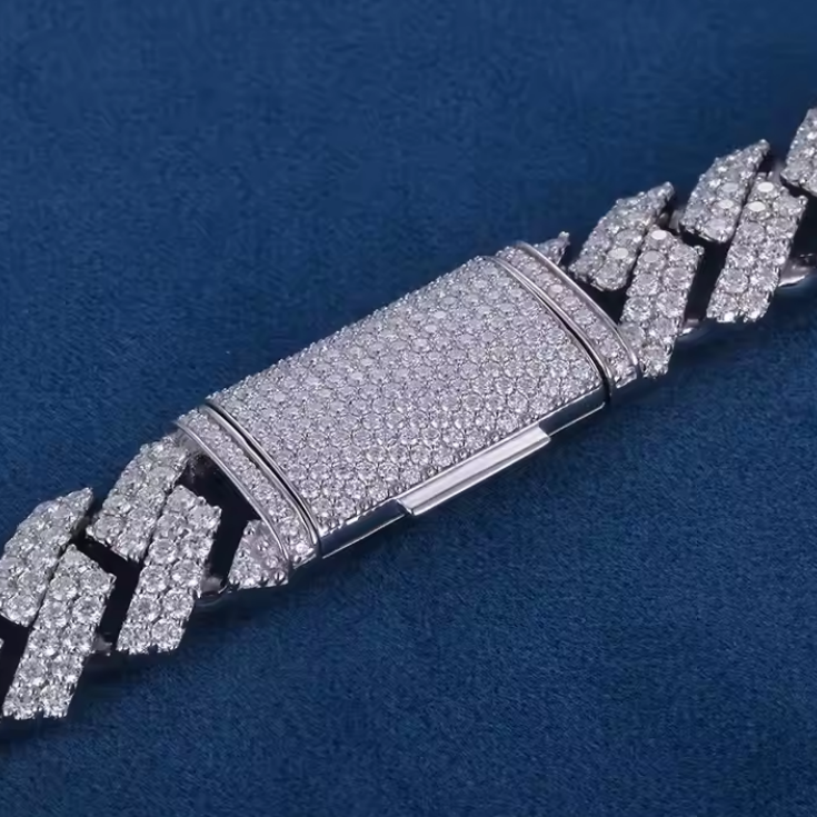 Dominate every room with the Phantom Cuban Necklace. This commanding piece doesn't just shine—it blinds with VVS moissanite stones cascading across a robust S925 silver foundation. Not for the faint-hearted, this Cuban chain demands attention and marks you as someone who refuses to be ignored. Each bracelet is carefully made to order, ensuring quality and attention to detail.